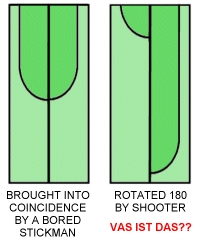 When we first looked at our split bubbles and then rotated 180 degrees , if the Gun was indeed perfectly centered , possibly because it hadn't been moved since our previous accurate shooting assignment , we would now see a 'mirror image' of the bubbles . Right ?
