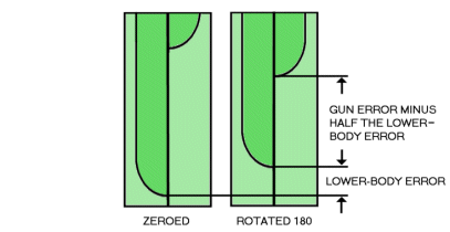 Above we see that once again both Lower-Body and Gun are contributing to the 'total leveling error' in the same direction . Now , we can also see that the second image is very close to being a duplicate of the Zeroed image , which means that there is almost no Lower-Body Error . Do you agree ? So then almost all of the error showing must be Gun error . Excellent !